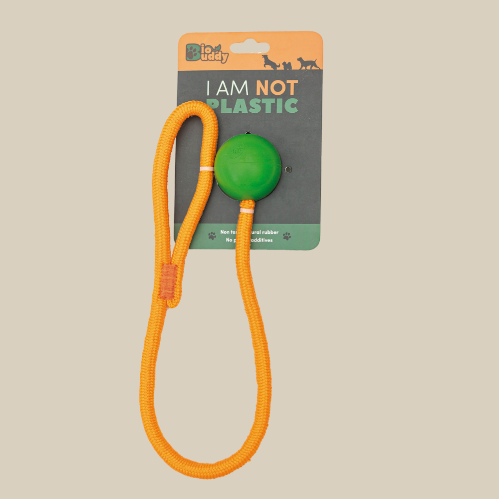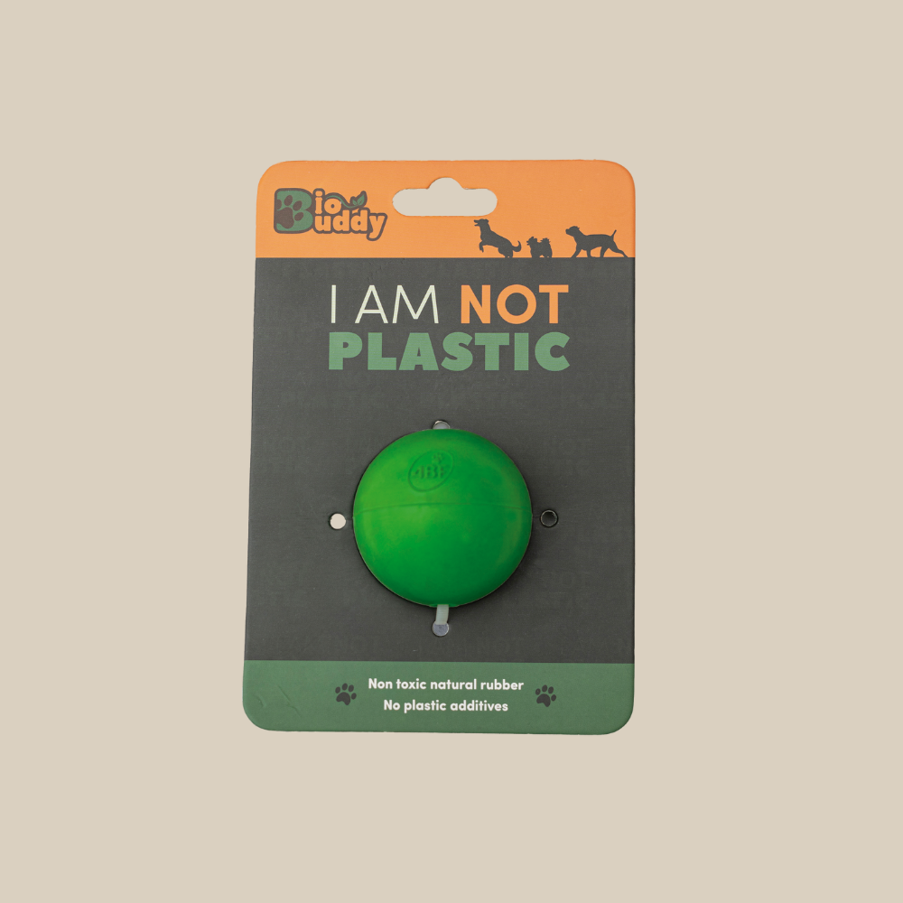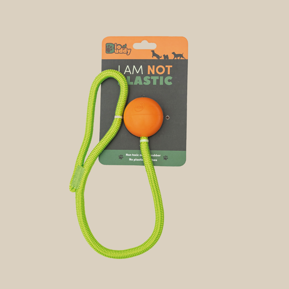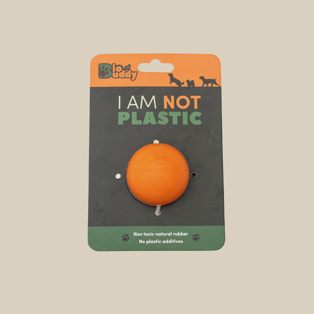 Hay algo en la forma, en el peso, en el rebote. Tu perro lo nota apenas lo muerde: es firme, pero no duro. Flexible, pero resistente. Esa sensación pura, limpia y natural nace del material que usamos: auténtico hule natural, libre de plásticos y sin tóxicos.